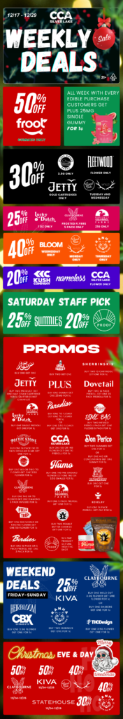 California Caregivers Alliance (CCA) Silver Lake, established in 2006, has a significant presence in the Los Angeles cannabis market. Boasting over 40 years of cumulative experience in the cannabis industry, we are known for our competitive pricing and one of the largest selections of cannabis products in the Los Angeles area.